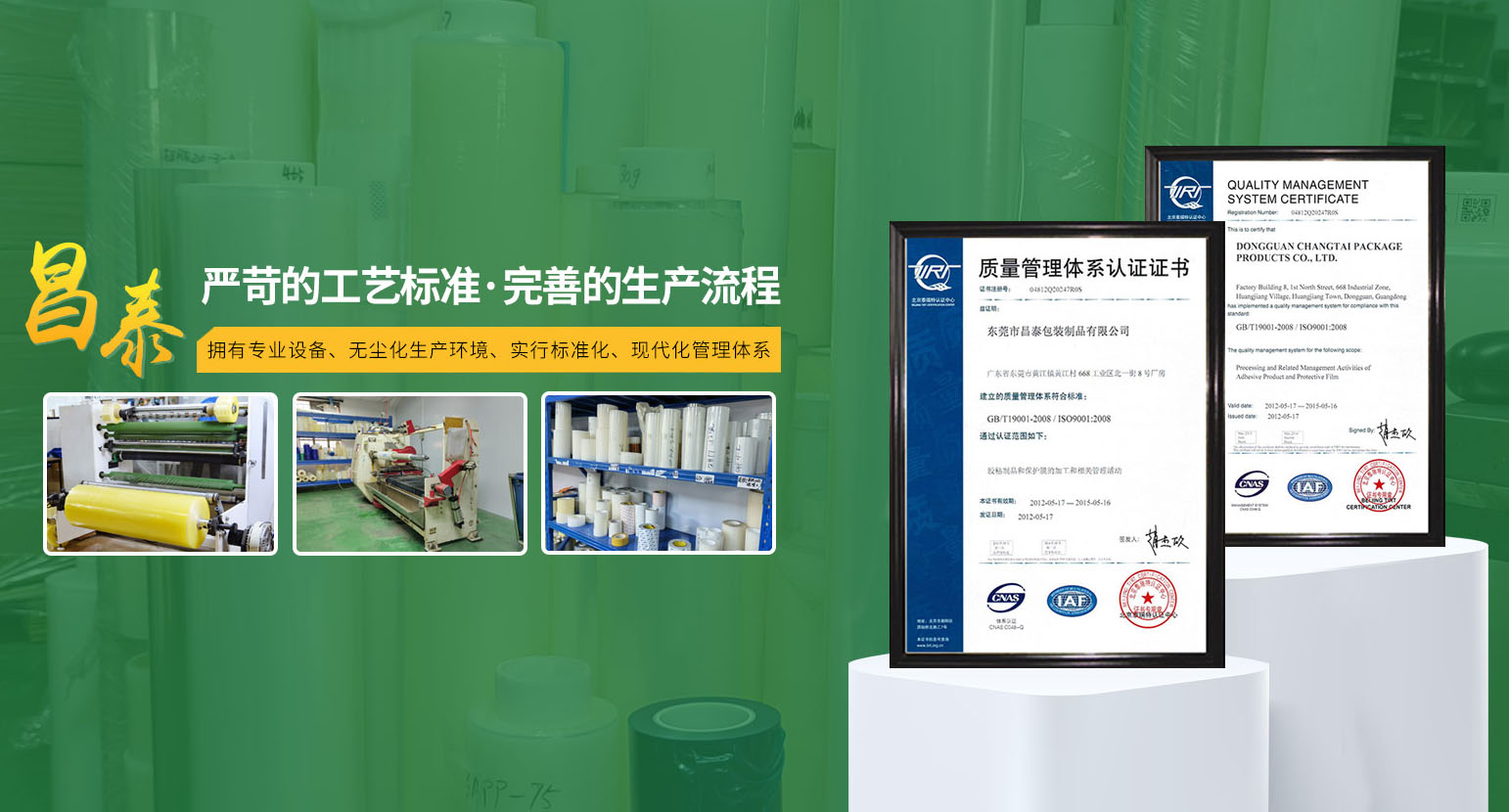 专业生产PE、PVC、PET保护膜系列及工业胶黏制品高温胶带,美纹纸,纤维胶带及其他特殊胶带。广泛应用于触摸屏、玻璃镜面外壳等,保护产品避免在加工和运输及使用的过程中表面受损擦花。